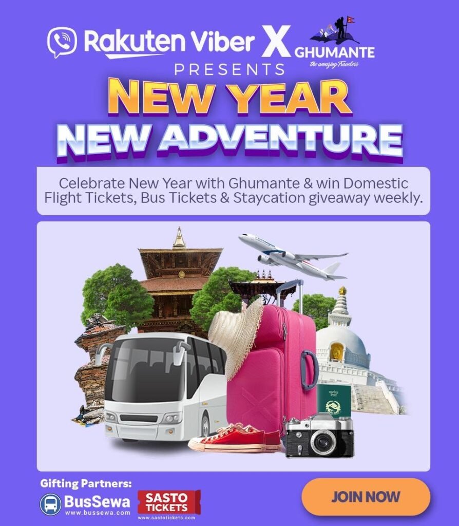 राकुटेन भाइबरले नयाँ वर्षकाे अवसरमा एक्सप्लोर नेपाल च्यानल ट्राभल क्याम्पेनको चौथो सिजन सुरु गर्दैछ। यसले देशका आकर्षक गन्तव्य, आश्चर्यजनक परिदृश्य र समृद्ध सांस्कृतिक सम्पदाहरूलाई अझै प्रष्ट रुपमा चिनाउने विश्वास गरिएको छ।