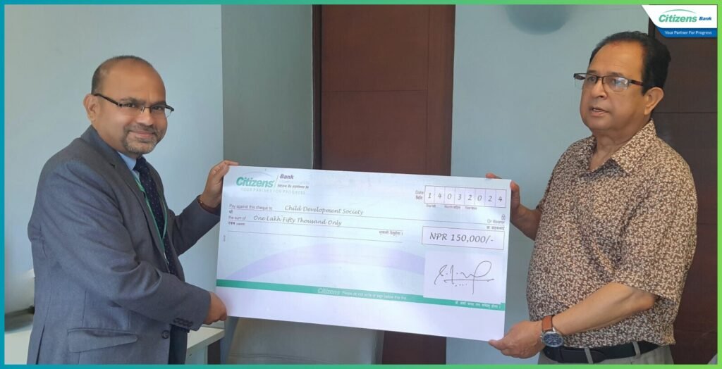 सिटिजन्स बैंक इन्टरनेसनल लिमिटेडले १७ औं वार्षिकोत्सवका अवसरमा बालविकास समाजलाई आर्थिक सहयोग स्वरुप एक लाख पचास हजार रुपैयाँ प्रदान गरेको छ । समाजले करिब एक दशकदेखि अबोध, अनाथ बालबालिकालाई लालनपालन, स्वास्थ्य उपचार र शिक्षा प्रदान गर्दै आएको छ ।