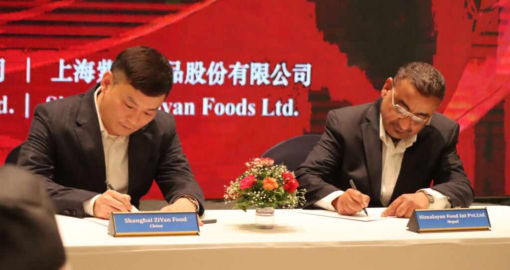 काठमाडाैंमा साेमबार आयोजित कार्यक्रममा नेपालको हिमालयन फुड इन्टरनेशनल र चीनको साङ्घाई जियान फुड कम्पनी लिमिटेडबीच यससम्बन्धी समझदारीपत्रमा हस्ताक्षर भएको छ ।