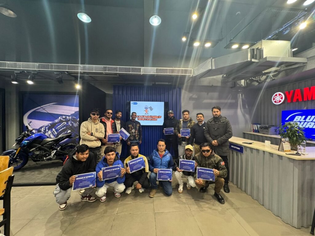काठमाडौं, नेपाल, डिसेम्बर २५, २०२४ – ब्लु स्ट्रिक्स च्याप्टर लिडर अनबोर्डिङ इभेन्टको सफलता पछि यामाहाले आफ्नो वितरक एमएडब्लू राइड्स मार्फत् नेपालभरका आफ्ना च्याप्टर लिडरहरूका लागि आधारभूत रोड मार्शल तालिमको आयोजना गर्यो।